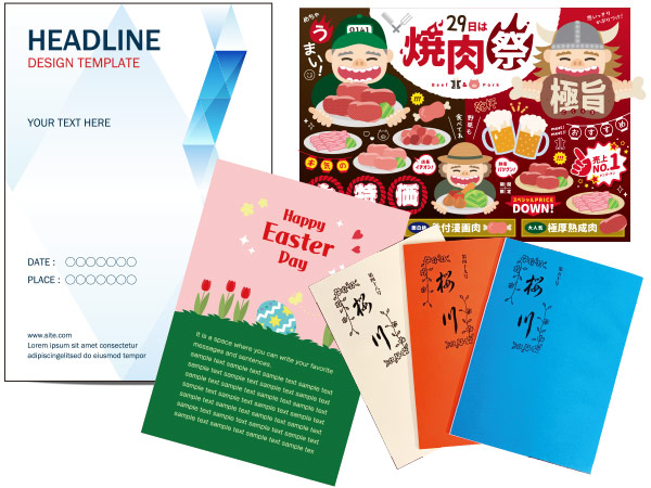 リーフレットなど三つ折りリーフレットから、最大B0判をB5仕上げに加工する複数折りまで多岐に渡りカタチにします。